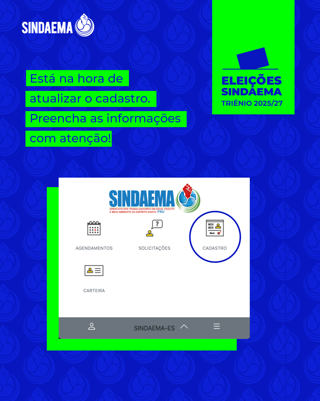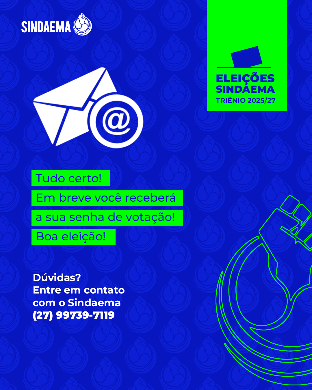 Dúvidas? Entre em contato com o Sindaema (27) 99739-7119.